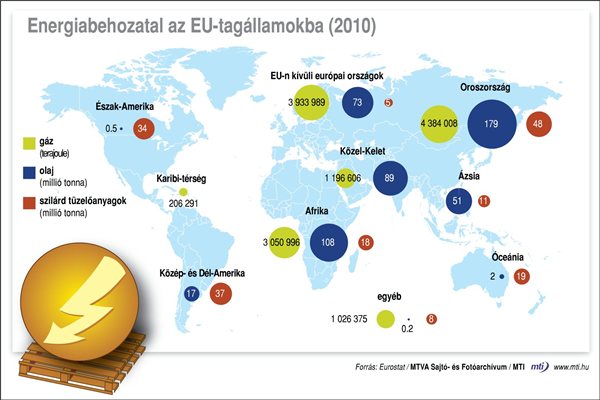 Energiabehozatal az EU-tagállamokba 2012-06-21 energiaoldal Hírek, Korszerűsítés, felújítás Energiabehozatal az EU-tagállamokba (2010) forrás: MTI FacebookTweetPin EnergiabehozataleuEurópai Unióimport