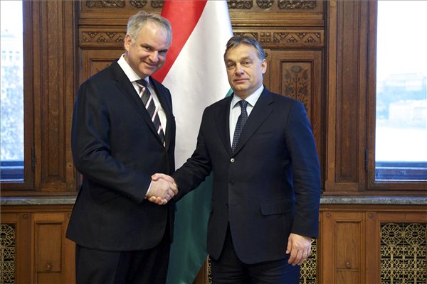 A Miniszterelnökség által közreadott képen Orbán Viktor miniszterelnök (j) és Johannes Teyssen, az E.ON elnök-vezérigazgatója kezet fog, miután szándéknyilatkozatot írtak alá az E.ON Csoport magyarországi földgázipari érdekeltségeinek az MVM-re történő átruházásáról 2012. november 30-án a Parlamentben. MTI Fotó: Miniszterelnökség/Árvai Károly