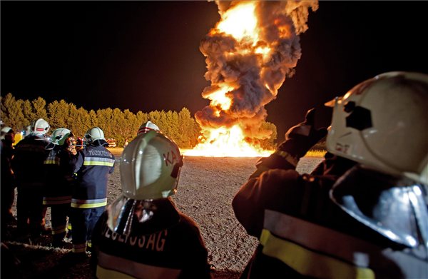A hatalmas mennyiségű éghető anyagot az erre kialakított speciális betonmedencébe öntötték, elzárva a környezettől, ezután gyújtották be.