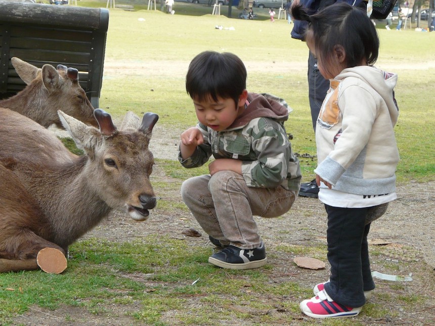 A közparkba érkező diák- és turistacsoportok meg is etethetik az állatokat a helyben vásárolható szarvaskeksszel (sika-szembei). Ezt a cukormentes csemegét műanyag csomagolás nélkül árulják, azonban sok látogató másfajta ennivalóval is megkínálja a szarvasokat, a csomagolásokat pedig eldobálják a parkban – írja a BBC hírportálja.